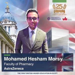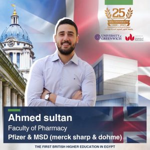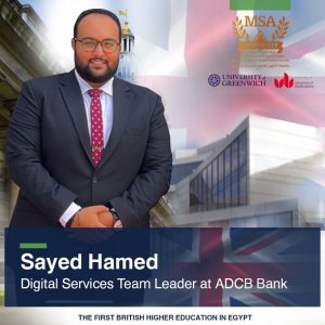 “Among other universities in Egypt, MSA is not only a university that delivers the best education for students, but also an excellent environment and culture for everyone who wants to be a significant shiny mark in society. Nowadays I work in GSK due to my skills and capabilities which I gained from my education and the excellent training opportunities at MSA & the British certification from Greenwich University.”