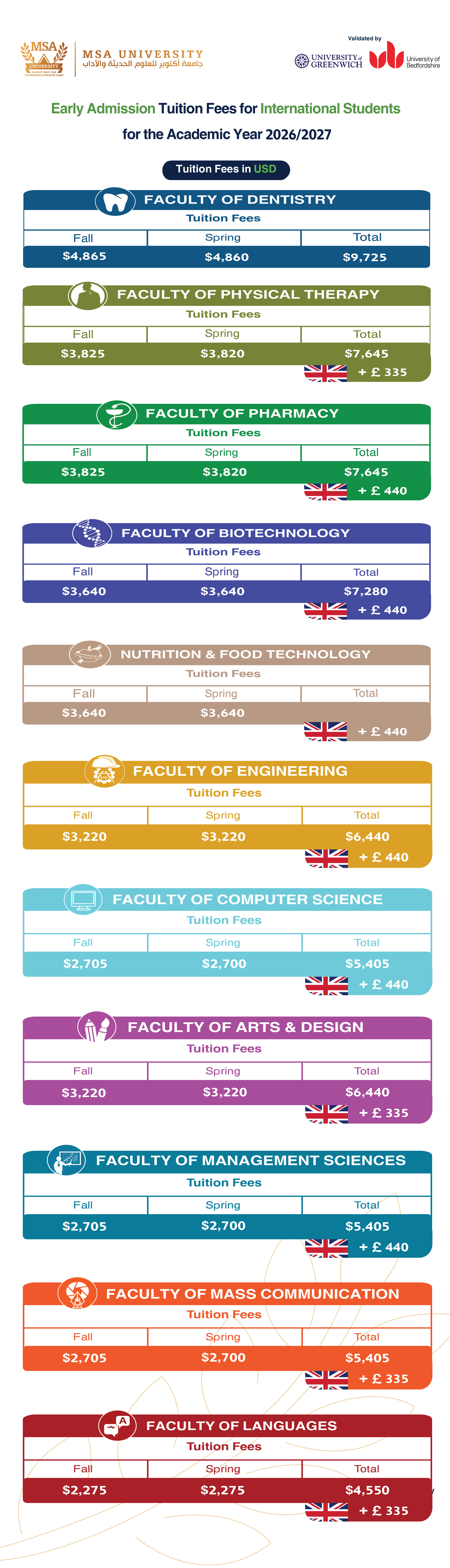 MSA University offers 50% discount to the following nationalities as a kind of financial Aid: