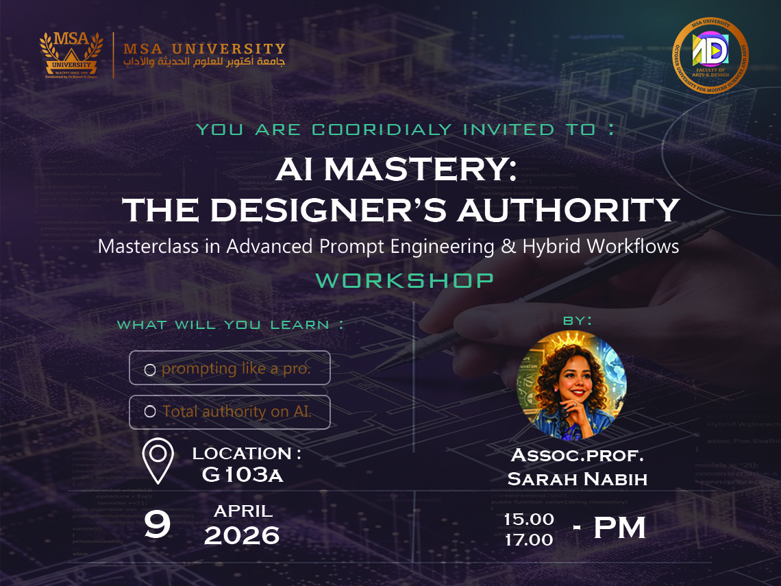 The Faculty of Arts and Design at October University for Modern Sciences and Arts (MSA University) is hosting the masterclass “AI Mastery: The Designer’s Authority – Advanced Prompt Engineering & Hybrid Workflows.” This upcoming session will be delivered by Associate …