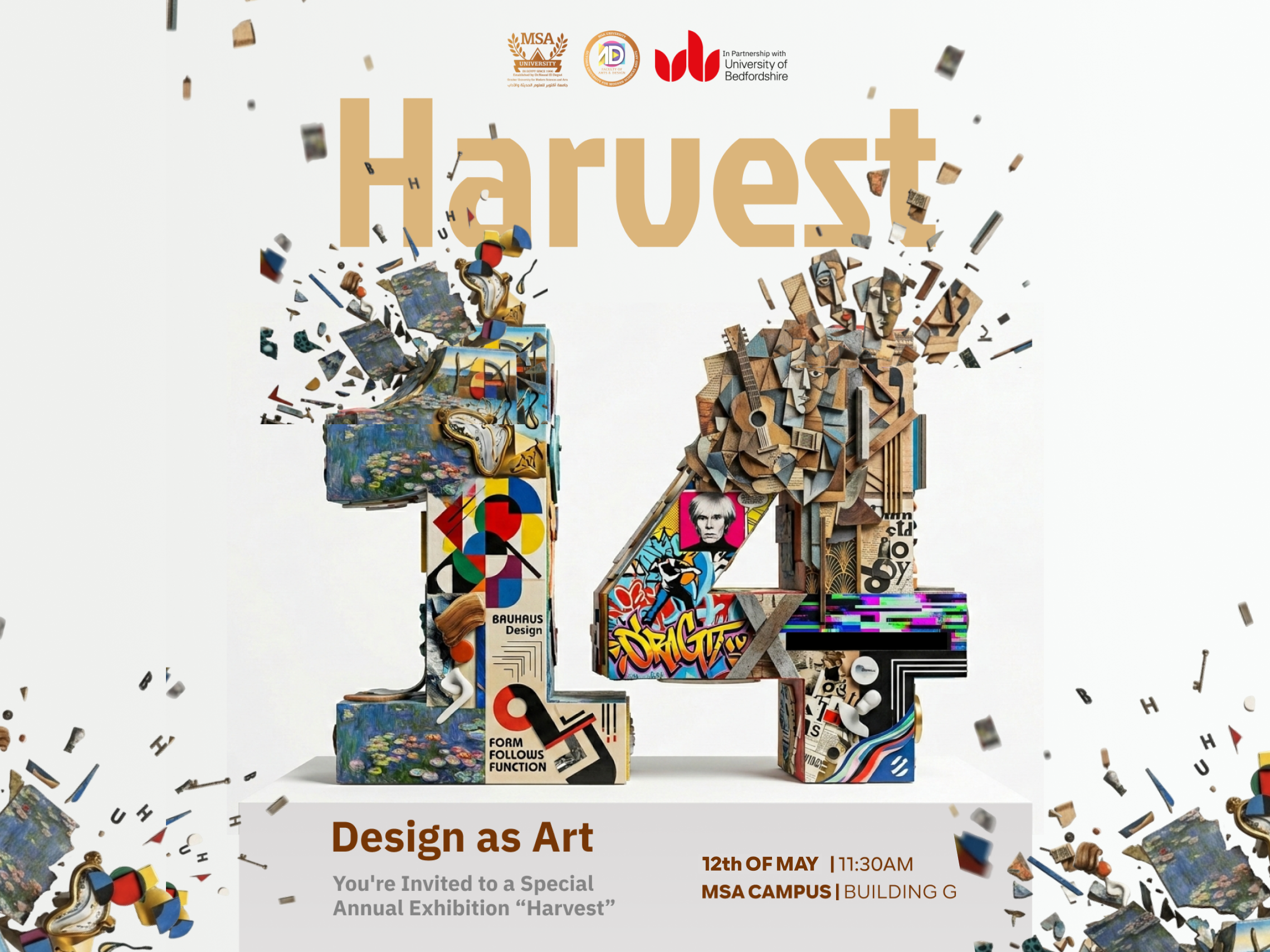 The Faculty of Arts and Design at October University for Modern Sciences and Arts (MSA University) is pleased to announce the upcoming HARVEST 14 Exhibition, a flagship annual event celebrating student creativity, innovation, and sustainability. Building on the success of …