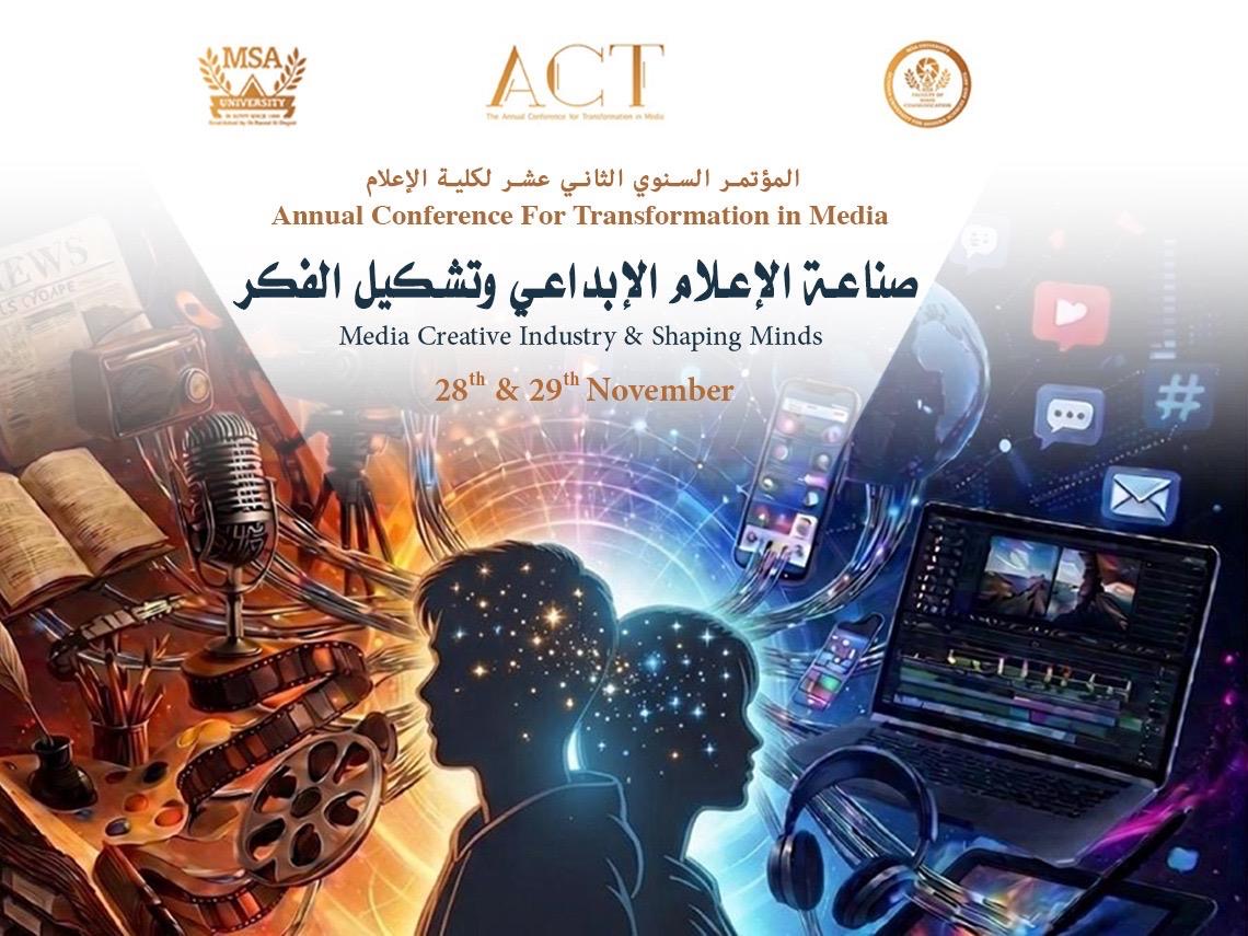 The Faculty of Mass Communication at October University for Modern Sciences and Arts (MSA) is honored to announce the organization of its 12th Annual Conference for Transformation in Media (ACT) under the title: “Media Creative Industry and Shaping Minds” Conference …