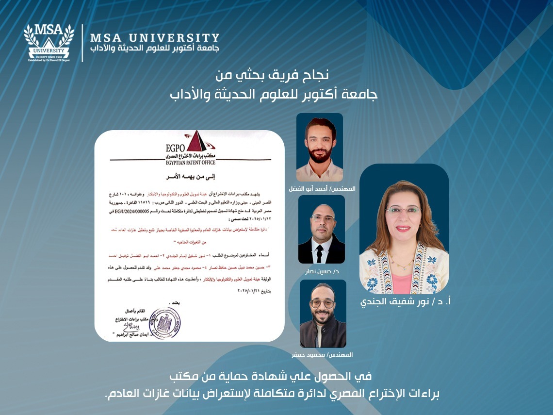 October University for Modern Sciences and Arts (MSA University) proudly announces that Dr. Nour Shafik El-Gendy, Professor of Environmental Sciences and Head of Quality, Environmental Safety, and Occupational Health at the University, alongside Eng. Ahmed Aboul-Fadl from the University’s Center …