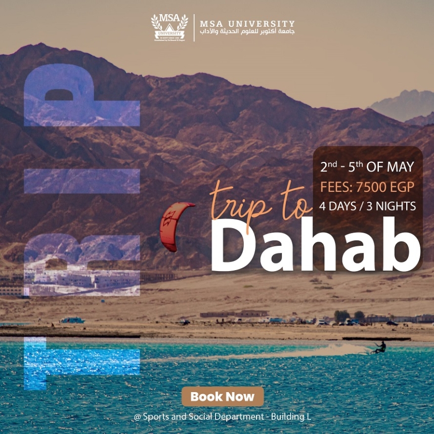 From 2nd to the 5th of May, 2024; Get ready for an unforgettable journey! The Sports and Social Activities Department at October University for Modern Sciences and Arts (MSA University) invites you to join an exhilarating trip to DAHAB from …
