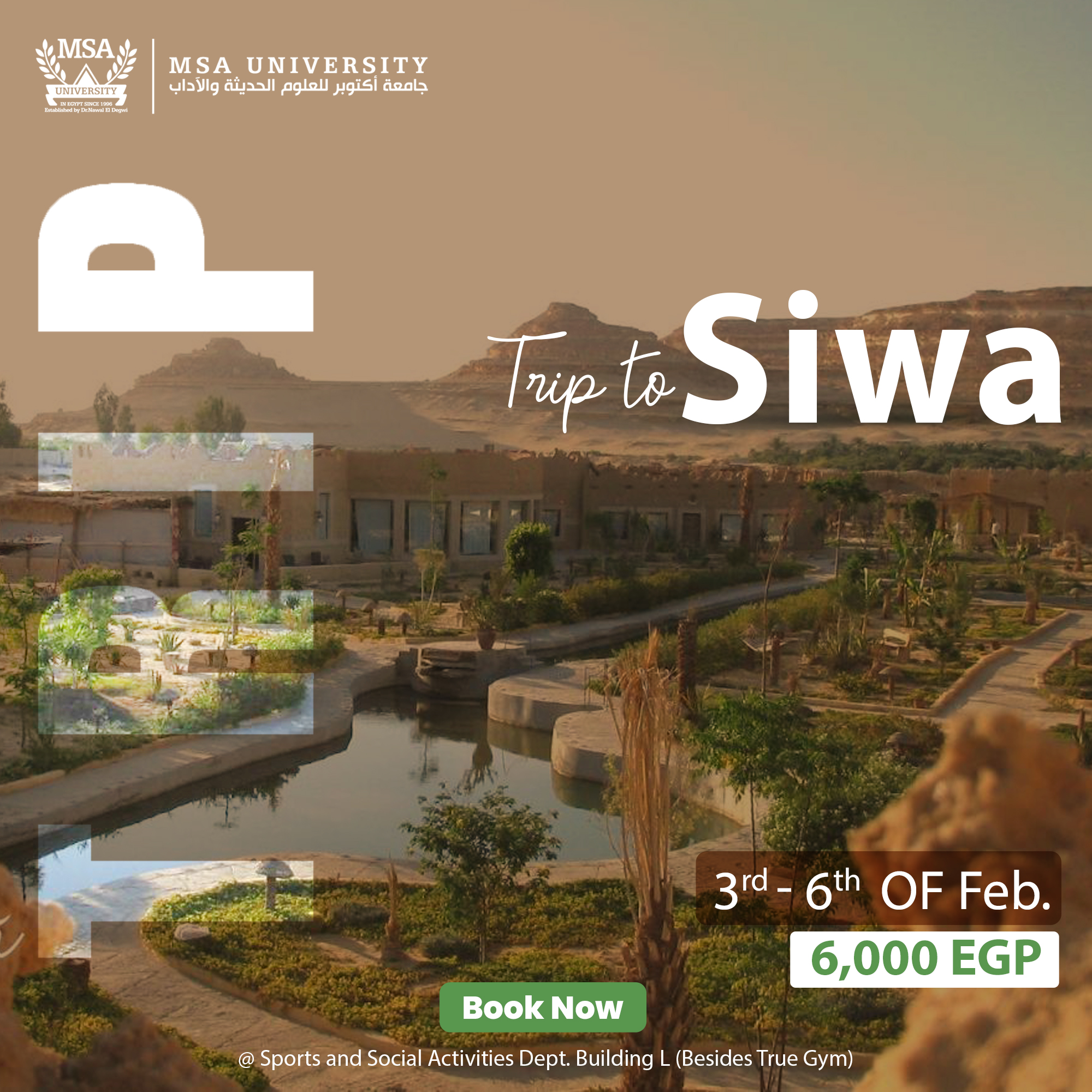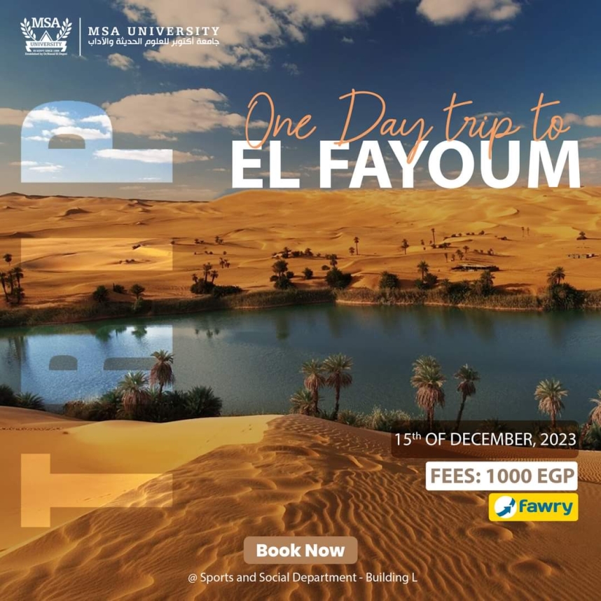 Pack your bags and let the post-midterm adventure begin. The Sports and Social Activities Department is organizing a trip to El Fayoum on Friday 15th of December, 2023 that you shouldn’t miss. PRICE: 1000 LE. Bus pickup location: MSA University …