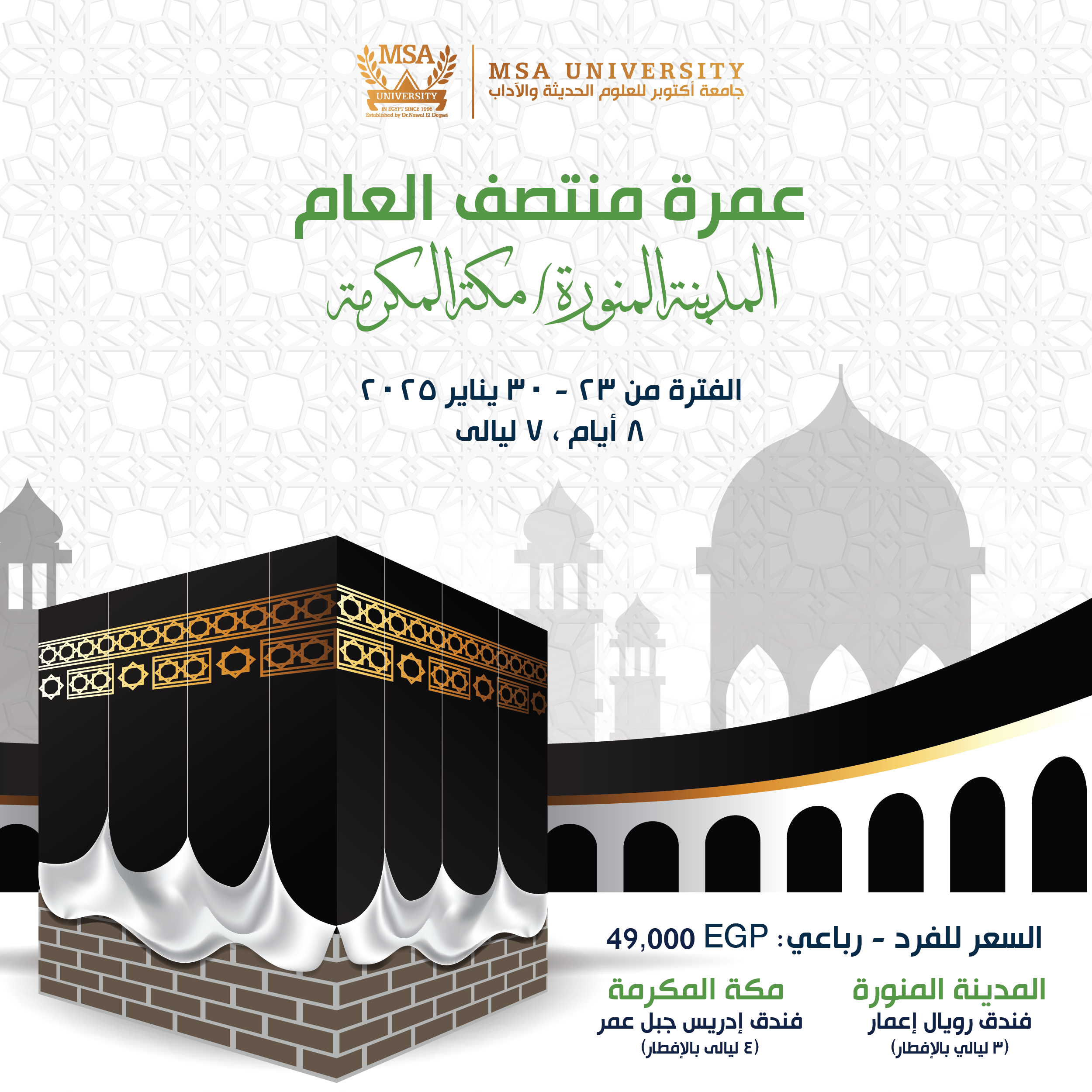 From 23-30 January 2025; As part of October University For Modern Sciences And Arts (MSA)’s dedication to offering unique cultural and spiritual experiences, we are thrilled to announce an upcoming Umrah trip for our students only. This enriching journey is …
