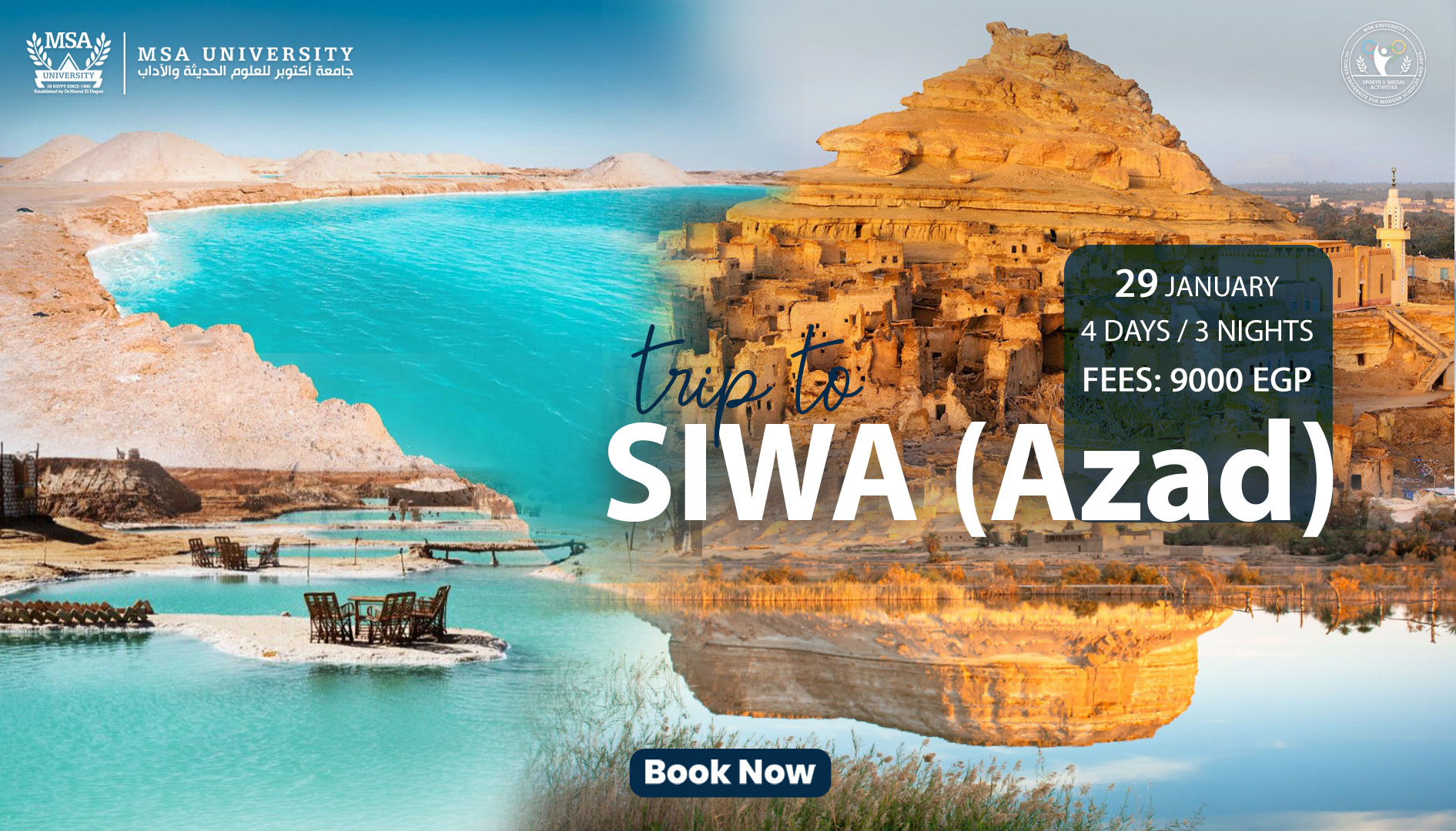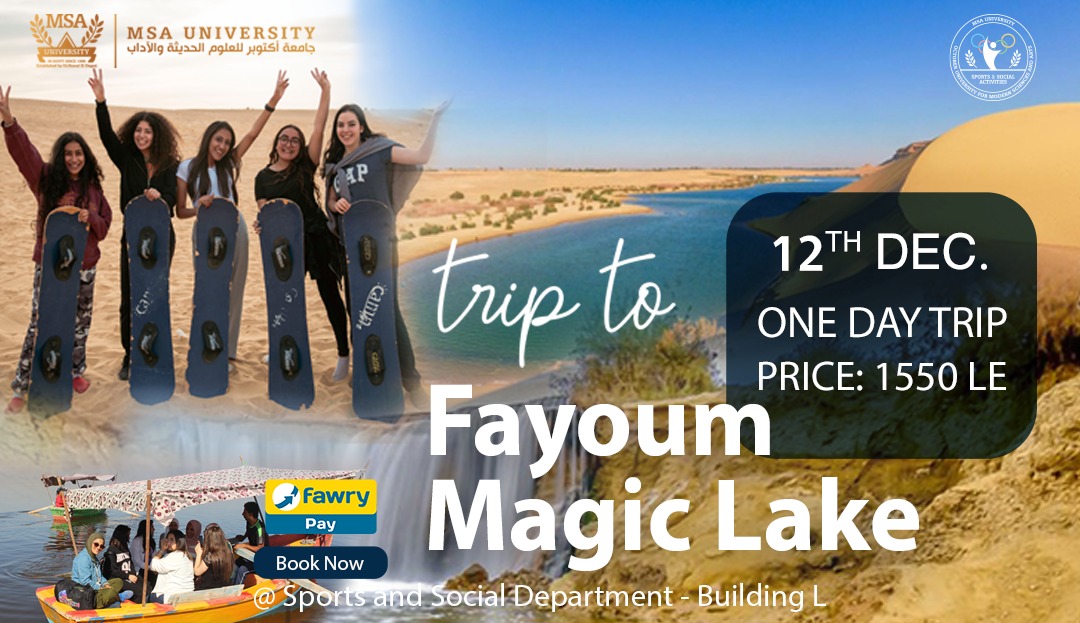 Pack your bags and let the post-midterm adventure begin. The Sports and Social Activities Department is organizing a trip to El Fayoum on Friday 15th of December, 2023 that you shouldn’t miss. PRICE: 1000 LE. Bus pickup location: MSA University …