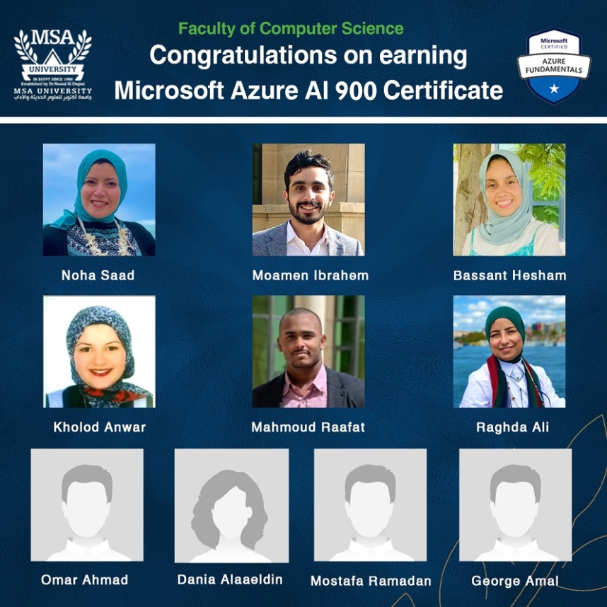 MSA University’s Faculty of Computer Science Staff members & Students Congratulations on earning your Microsoft azure 900 AI certification! MSA University would like to congratulate and extend its vast appreciation to the Faculty of Computer Science staff members and students …