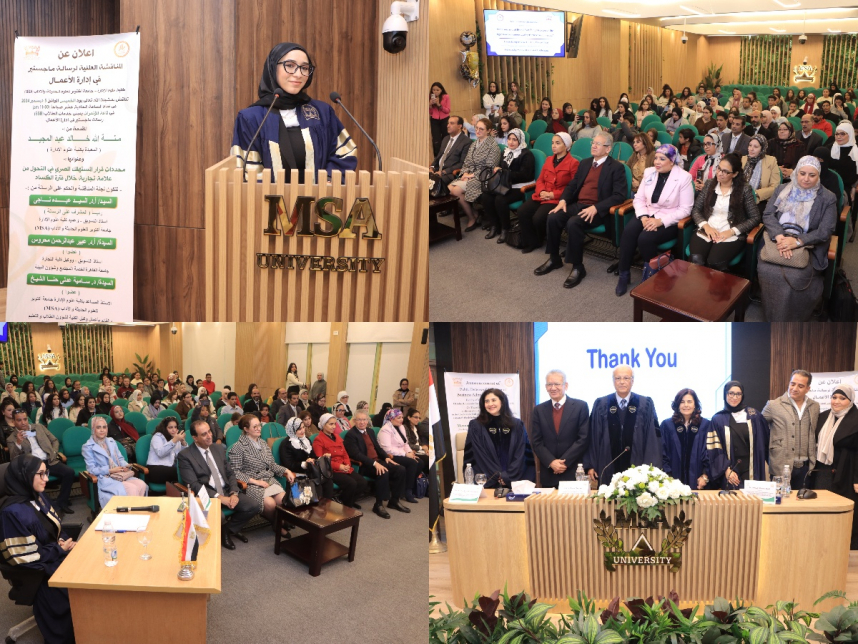 The First Scientific Discussion for Obtaining a Master’s Degree at the MSA University Faculty of Management Sciences! The researcher, Menat Allah Khaled Abdel-Majeed (a teaching assistant at the Faculty of Management Sciences), has obtained a Master’s degree in Management Sciences …