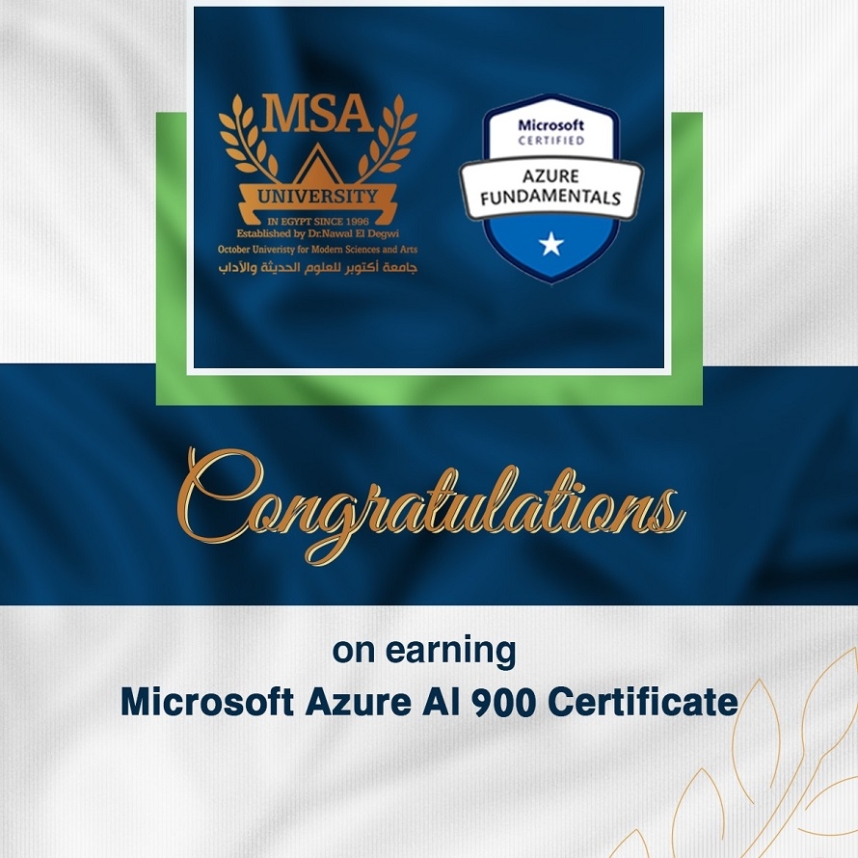 MSA University would like to congratulate and extend its vast appreciation to the Faculty of Engineering and the Faculty of Management Sciences’ staff members for completing and passing Microsoft artificial intelligence. In addition, the University would like to thank them …