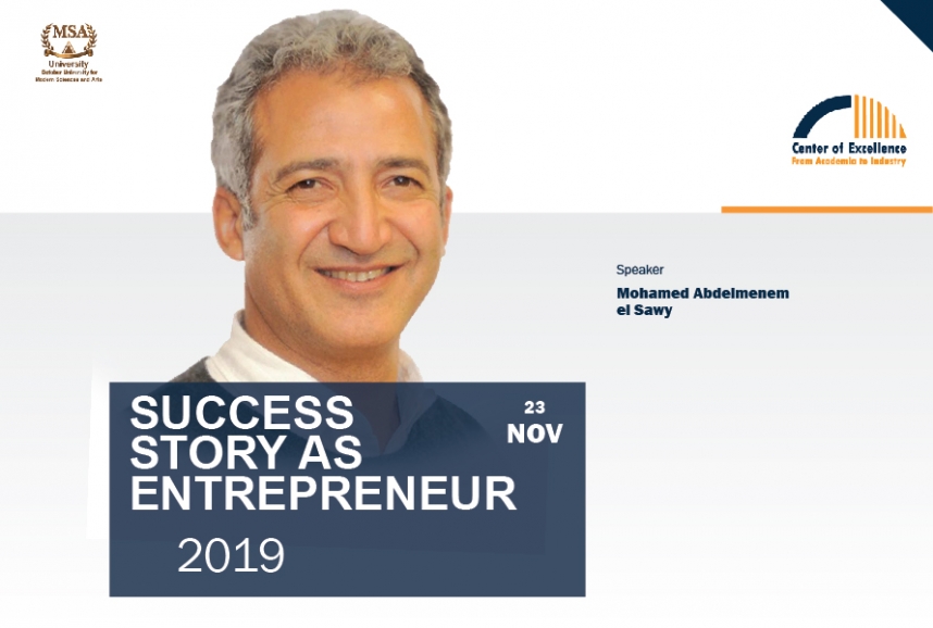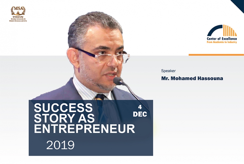 The Center of Excellence for Entrepreneurship at MSA University is hosting Mr. Mohamed Hassouna, Senior Adviser to the Minister and First Undersecretary at the Ministry of Public Business Sector in charge of SOE reform program in Egypt to talk about his success story as one of the entrepreneurs in Egypt on Wednesday, December 04, 2019 at 01:00 pm in the G Building, Room G102B
