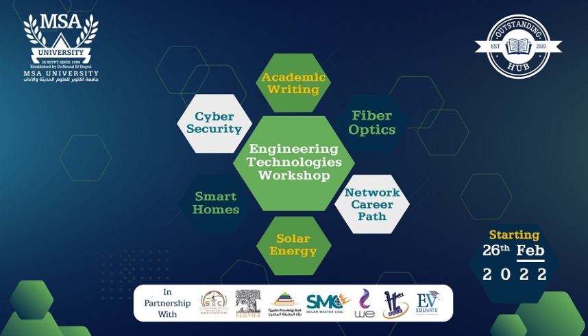As MSA University and the Faculty of Engineering are keen to set the roadmap to your training required to master the graduation projects, in partnership with EKB, Elsevier, STC committee, SMC, Eduvate, Telecom Egypt Company, and IT Gate Academy, The Outstanding hub and ECE department are pleased to invite you to attend the 6-days workshop entitled ” Engineering Technologies” (36 Hours training) that will include a variety of practical training sessions beside scientific research program to reach out the full image of your thesis at the end of your journey.