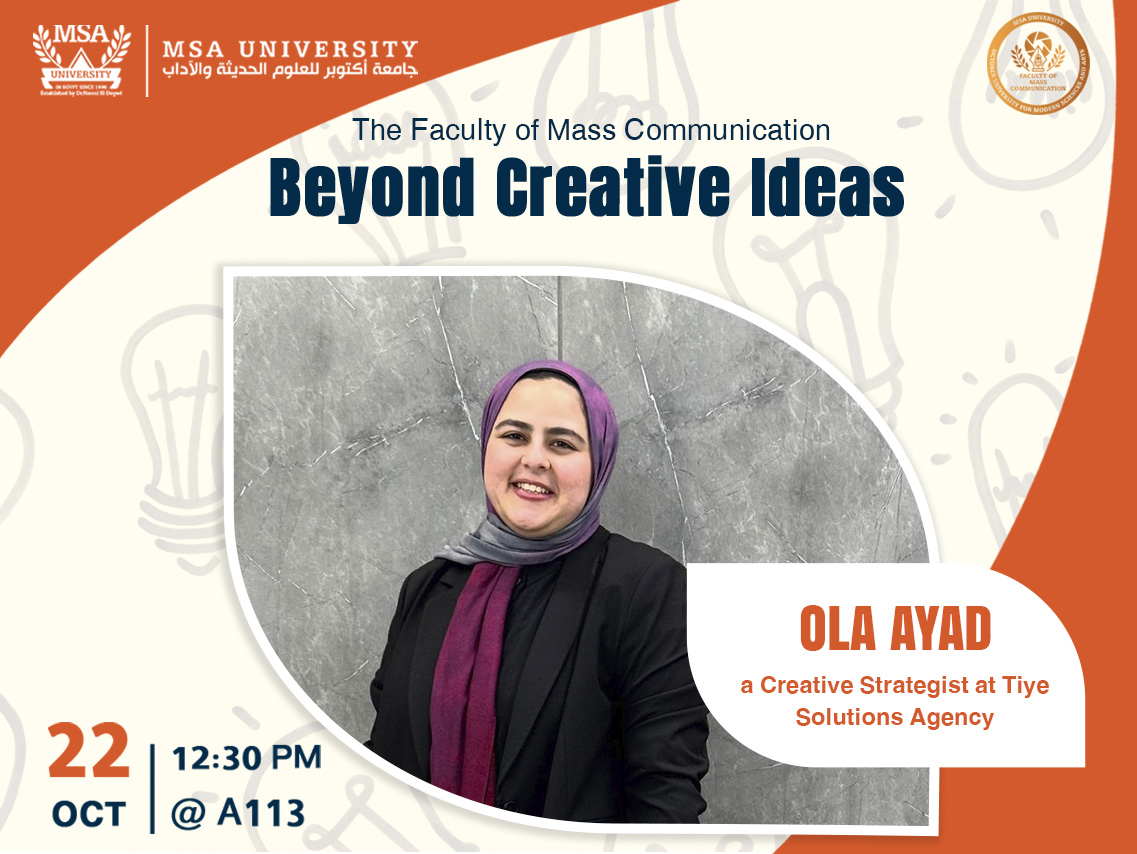 The PR and Advertising Department at the Faculty of Mass Communication, October University for Modern Science and Arts (MSA) is delighted to announce a hands-on practical workshop titled “Beyond Creative Ideas” which focuses on Content Creation Idea Generation across different fields.