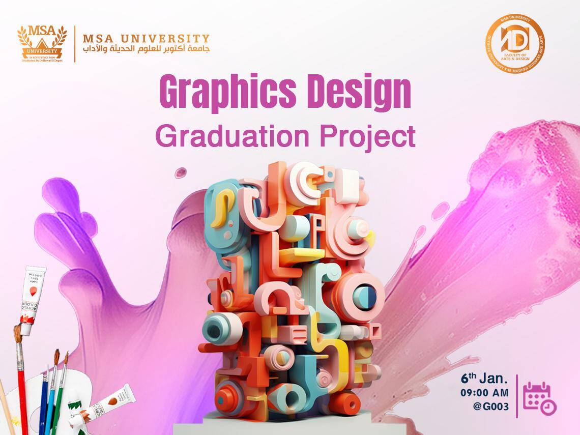 The Faculty of Arts and Design at October University for Modern Sciences and Arts (MSA University) is proud to present the Graphics Design Graduation Project I, where innovation meets creativity. This milestone project serves as a platform for final-year students to showcase their talent, dedication, and expertise in graphic design.