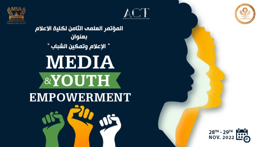 The Faculty of Mass Communication at October University for Modern Sciences and Arts (MSA University) is conducting the 8th ACT Conference entitled ” Media and Youth Empowerment” on the 28th and 29th of November, 2022. This conference comes within the framework of Egypt’s Vision 2030 and in line with the UN Sustainable Development Goals to support the role of digital and traditional media in empowering the youth socially, politically, economically and culturally.