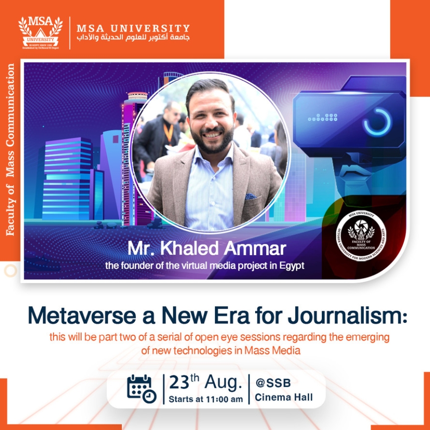 Following the success of our previous open-eye session, the Faculty of Mass Communication is excited to present part two of the series on the emergence of new technologies in Mass Media. This session will be given by the guest speaker Mr. Khaled Ammar, the visionary founder of the virtual media project in Egypt. Moreover, this session promises to be enlightening and inspiring for everyone interested in the evolving landscape of Journalism.