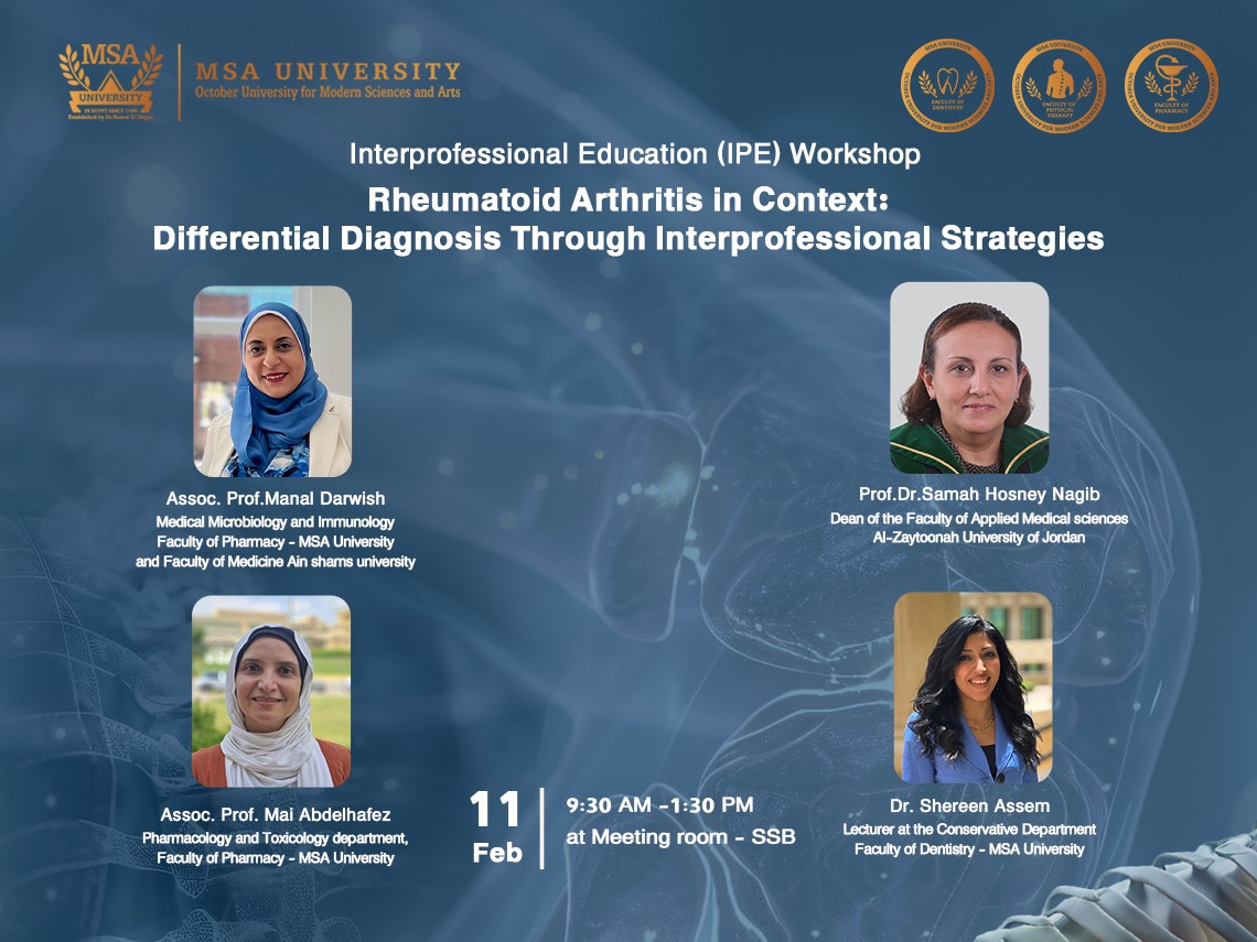 The Interprofessional Education (IPE) at October University for Modern Sciences and Arts- MSA is inviting you to a workshop entitled “Rheumatoid Arthritis in Context: Differential Diagnosis Through Interprofessional Strategies” in celebration of Rheumatoid Arthritis Awareness Month.