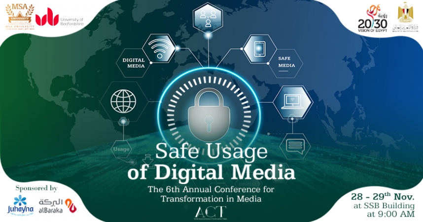 In the light of Egypt’s 2030 developmental plan, MSA’s Faculty of Mass Communication is launching its 6th Annual conference for Transformation in Media “ACT” under the title of “Safe Usage of Digital Media: Ethics and Legislations” with a grand opening session featuring ministers and media figures within a two days program!