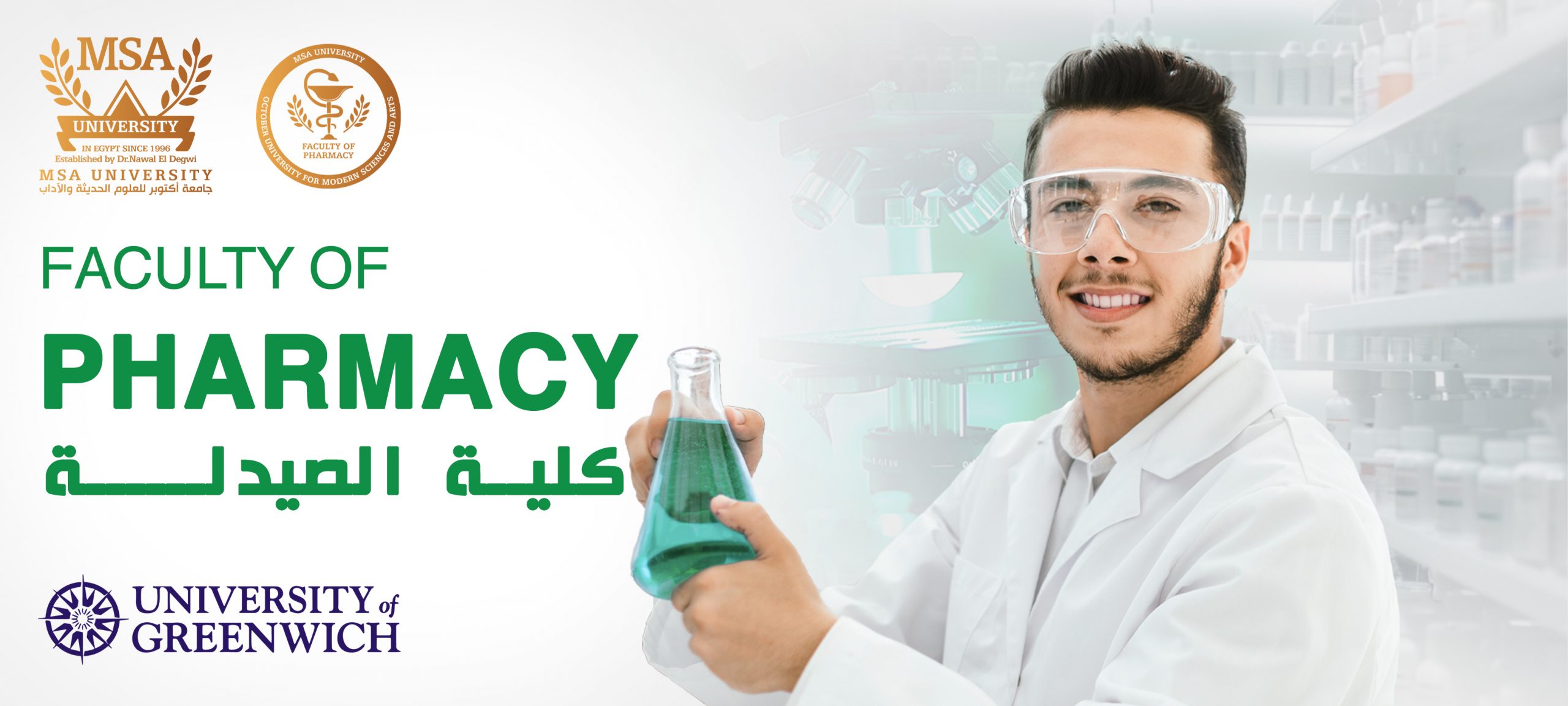 MSA Faculty of Pharmacy offers up‐to‐date courses that cover a wide spectrum of pharmaceutical and biotechnological sciences, within the framework of the rules and regulations of the Egyptian Supreme Council of Universities (ESCU) as well as of our British partner. Programmes include specialized and updated courses in clinical pharmacy, pharmaceutical chemistry, Pharmaceutics and Industrial Pharmacy, Pharmacology and Toxicology, pharmacognosy, Microbiology and Immunology, biochemistry, behavioural science and management science in addition to courses in English, mathematics and computer scienceand computer science.