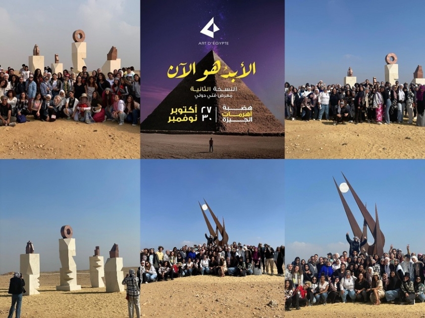 As a part of MSA University’s strategy to inform students of the trendy and newest updates to keep pace with the developments in the labor market, the Faculty of Arts and Design at October University for Modern Sciences and Letters (MSA University) organized an educational trip to “Forever is Now”, an International Art Exhibition at the Giza Pyramids for students of the preparatory year and the third year of the Graphics and Media Arts Department with the supervision of several faculty members.