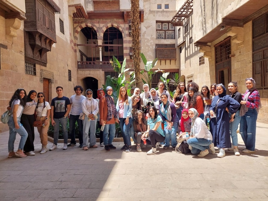 Within the framework of the keenness of the Faculty of Arts and Design at October University for Modern Sciences and Arts (MSA University) to develop and enhance the skills of the students, and as a part of the students’ curricula of studying the styles of architecture and interior design in different Islamic Eras within the course of “History and Interior Design”, the Faculty organized a field trip to Al-Moez Street for the students of the Interior Design Department. The Fieldtrip included a visit to Al-Aqmar Mosque, Al-Suhaimi House and Qalawun Complex.