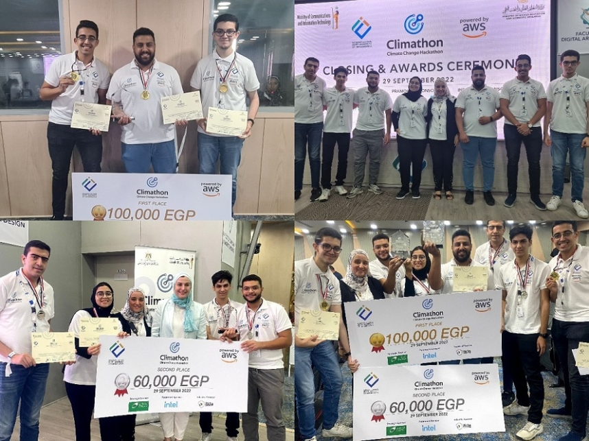 Two teams from the Faculty of Engineering at MSA University from the Departments of Industrial Systems Engineering, and Computer Systems Engineering won the Climathon competition (Climate Change Hackathon) held at Egypt Informatics University and powered by Amazon Web Services (AWS), Intel and Egypt Post to compete and share innovative ideas using technology to support the world in challenging climate change under Under the patronage of His Excellency the President of the Arab Republic of Egypt, Abdel Fattah El-Sisi, and the Ministry of Communications and Information Technology,
