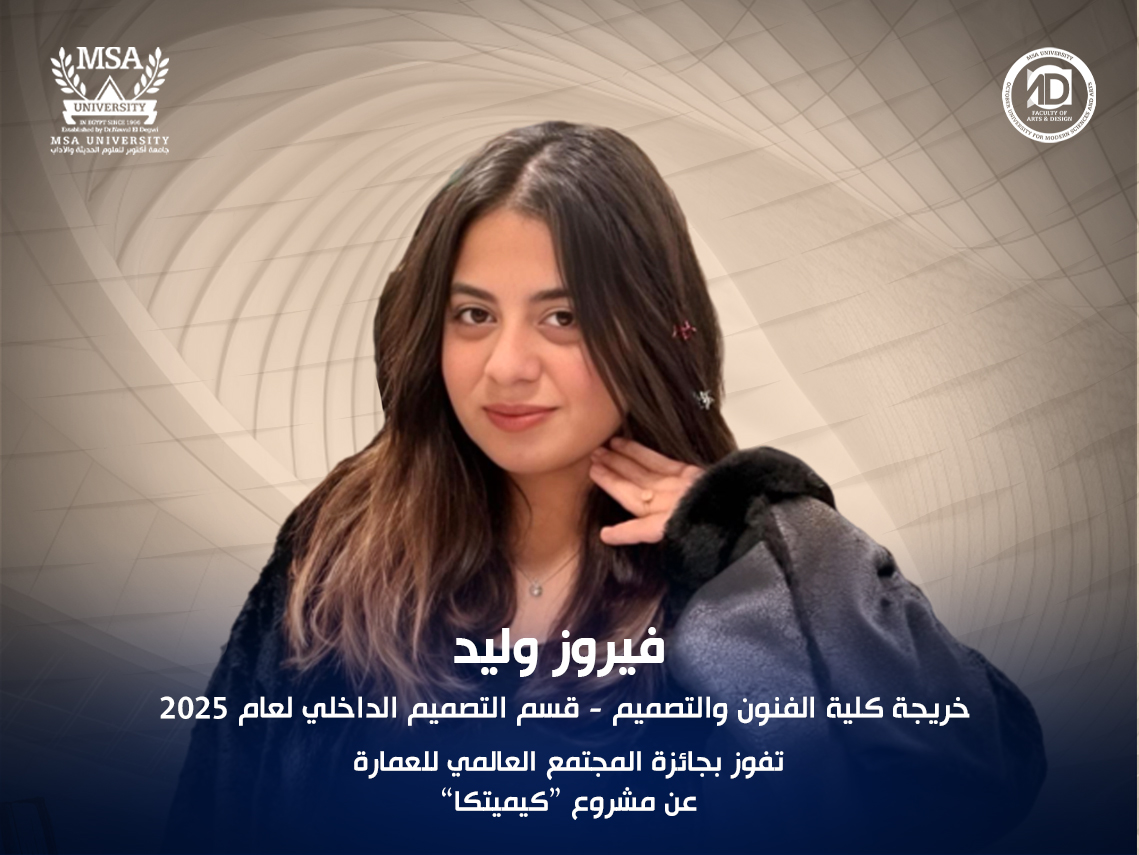 October University for Modern Sciences and Arts (MSA) proudly congratulates Fayrouz Waleed, an Interior Design student at the Faculty of Arts and Design, Class of 2025, for winning the Interior Design Award in the 51st Cycle of the World Architecture …