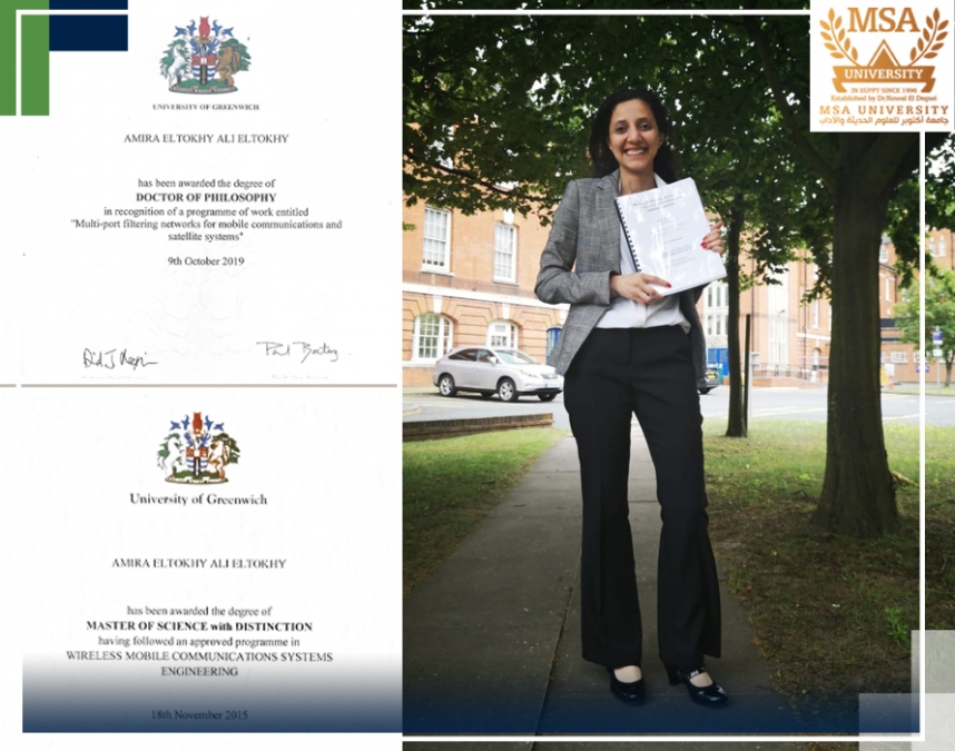 MSA University would like to extend it’s heartily congratulations to Dr Amira El Toukhy, Faculty of Engineering, Communication and Electronics Department, for achieving her PhD in Electrical Engineering from University of Greenwich, United Kingdom. She earned her scholarship PhD degree …