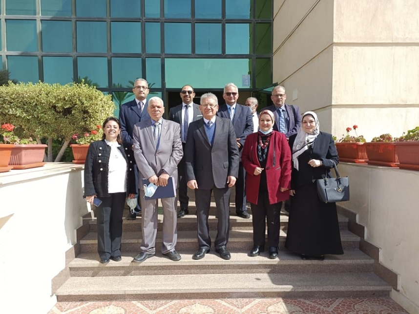 The team was under the chairmanship of Prof. Dr. Madiha Wassef, Professor at the Faculty of Medicine, Zagazig University and the membership of Prof. Dr. Abdullah Al-Shanawani, Professor at the Faculty of Pharmacy, Zagazig University, Prof. Dr. Ola El-Sayed, Professor at the Faculty of Pharmacy, Al-Azhar University, Prof. Dr. Hani Nashaat,, Professor at the Faculty of Pharmacy, Delta University, Prof. Dr. Huda Makhloof, Professor at Faculty of Medicine, Assuit University and Dr. Adel Magdy, Assistant Professor at the Faculty of Pharmacy, Al-Ahram Canadian University, who reviewed the faculty through a field visit. The team was welcomed by Prof. Dr. Khairy Abdel Hamid, President of the University, Prof. Dr. Hanan El-Laithy, Dean of the Faculty and the faculty members.