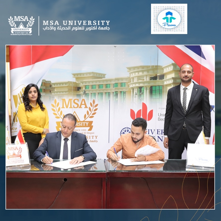 The Faculty of Biotechnology at October University for Modern Sciences and Arts (MSA University) signed a cooperation agreement with Plasma Company, specialized in training in scientific fields related to biotechnology and its various branches, applications and medical analysis.