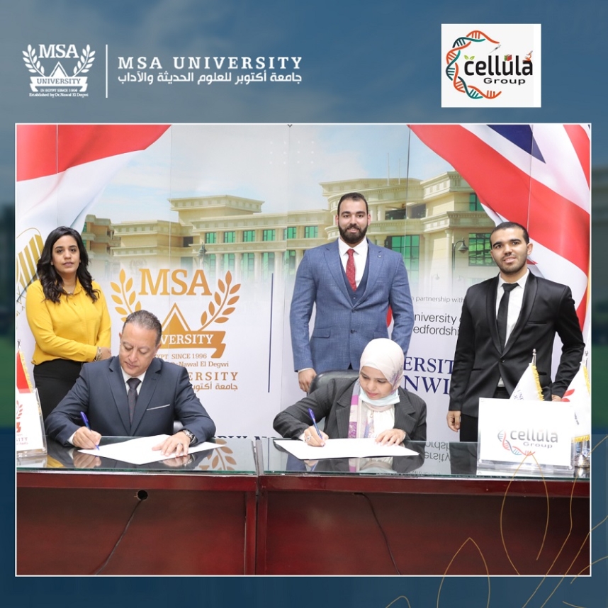 The Faculty of Biotechnology at October University for Modern Sciences and Arts (MSA University) signed a cooperation agreement with Cellula group is an institution of biotechnology labs, research, medical analysis and courses.