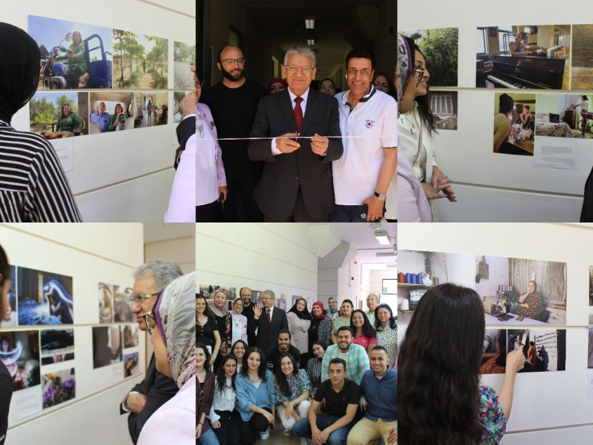The Exhibition was conducted in the entryway of the faculty and was launched through cutting the opening ribbon by University President Professor Khairy Abdel Hamid and Dean of the Faculty of Mass Communication Professor Amany Fahmy who was very fond of the magnificent artwork presented by the students.