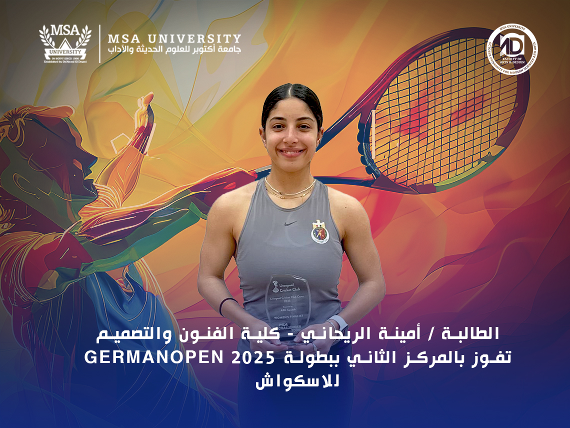 Amina El Reihany, a distinguished student from the Faculty of Arts And Design at October University For Modern Sciences And Arts (MSA), has delivered an exceptional performance at the prestigious German Open 2025 Squash Championship, securing second place in an …