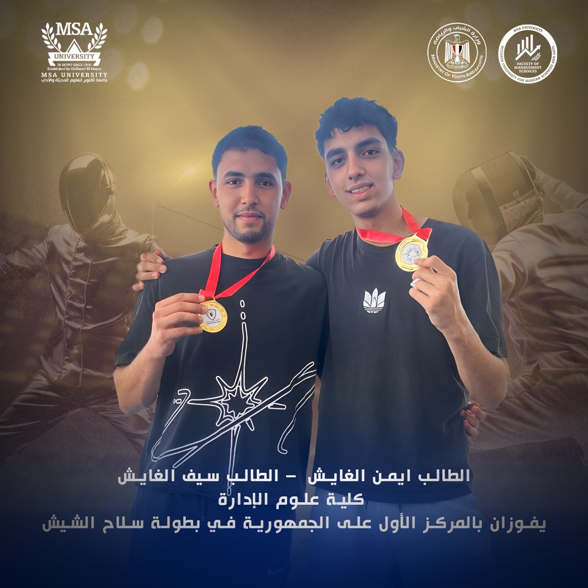 October University For Modern Sciences And Arts (MSA) Faculty of Management Sciences proudly celebrates a new athletic milestone achieved by its students Ayman El Ghaish and Seif El Ghaish, who secured First Place across Egypt in the National Foil Fencing …