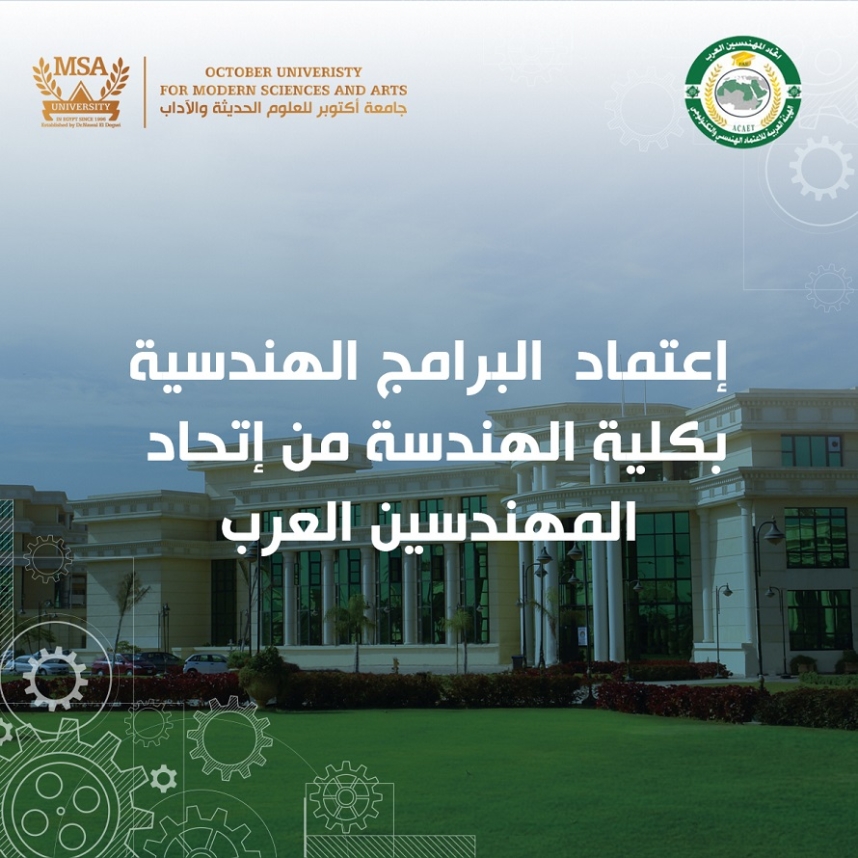 The Board of Trustees of October University for Modern Sciences and Arts – MSA University congratulates the Deanship of the Faculty of Engineering and the faculty members, students, administrators and all faculty employees for obtaining the accreditation of Federation of Arab Engineers (The Arab Commission for the Accreditation of the Engineering and Technology – ACAET), for a period of four years for all departments of the faculty, which are: