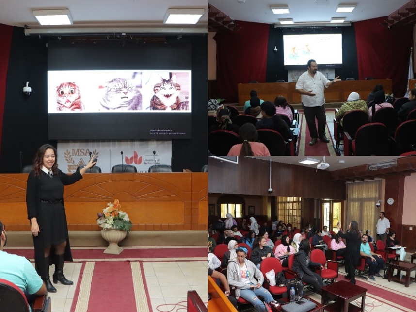 As part of the plan of the Faculty of Arts and Design to serve the community and under the auspices of the Dean of the Faculty Dr. Tarek Saleh, and the Faculty Assurance Unit headed by Dr. Hani Mohamed Al-Saeed, Director of the Quality Assurance Unit, a lecture was held entitled “The Arts of being a happy student”.