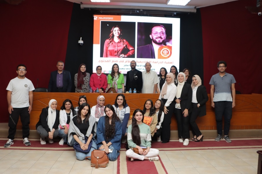 The Faculty of Mass Communication, in cooperation with the MSA Writers Association, held a symposium entitled “The Importance of Academic Media Studies in Content Creation” with the presence and participation of “Aya Saleh”, Director in television and digital journalism and a senior specialist in quality control, and she has participated in many important projects such as Amazon Prime, Sony, Fox, Netflix projects. And the students showed positive interactions towards the symposium.