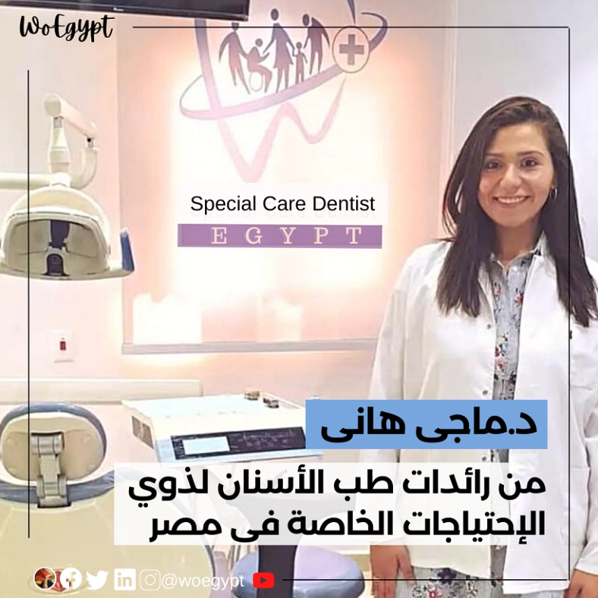 Dr. Magy Hany, a graduate of the 2018 batch of the Faculty of Dentistry at October University for Modern Sciences and Arts (MSA University) is from one of the pioneering dentists to care for people of special needs including people with special mental needs, have learning difficulties, hyperkinetic, autism, dentists’ phobia, cancer patients, obesity, the elderly and others with a certificate from “Ladies of Egypt”, as she is among the list of the most influential and important women in the field of dentistry.