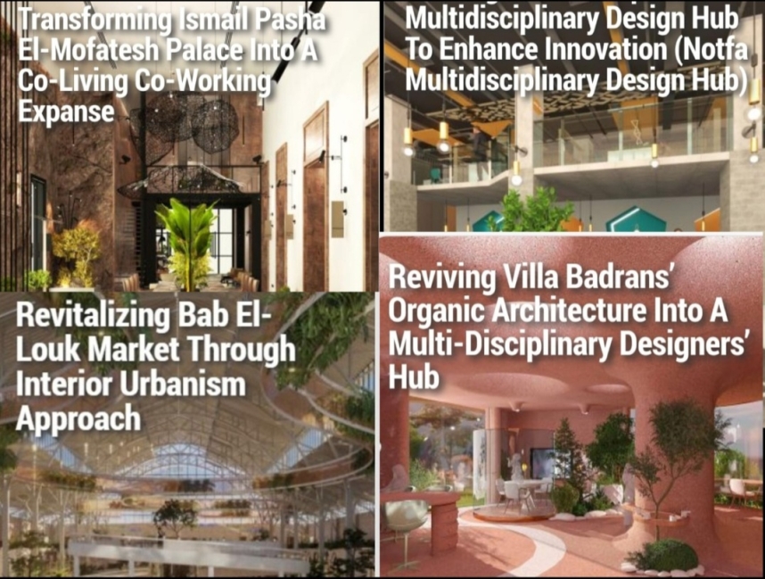 Our graduates competed with their graduation projects, which focused on the reuse and revitalization of heritage buildings. This falls within the strategic plan of the Faculty of Arts and Design at MSA University, an initiative derived from Egypt’s 2030 plan, guided by Profe. Dr. Tarek Saleh, the Dean of the Faculty, and Prof. Dr. Khaled Hawas, the Head of the Interior Design Department, along with the participation of students’ graduation projects.