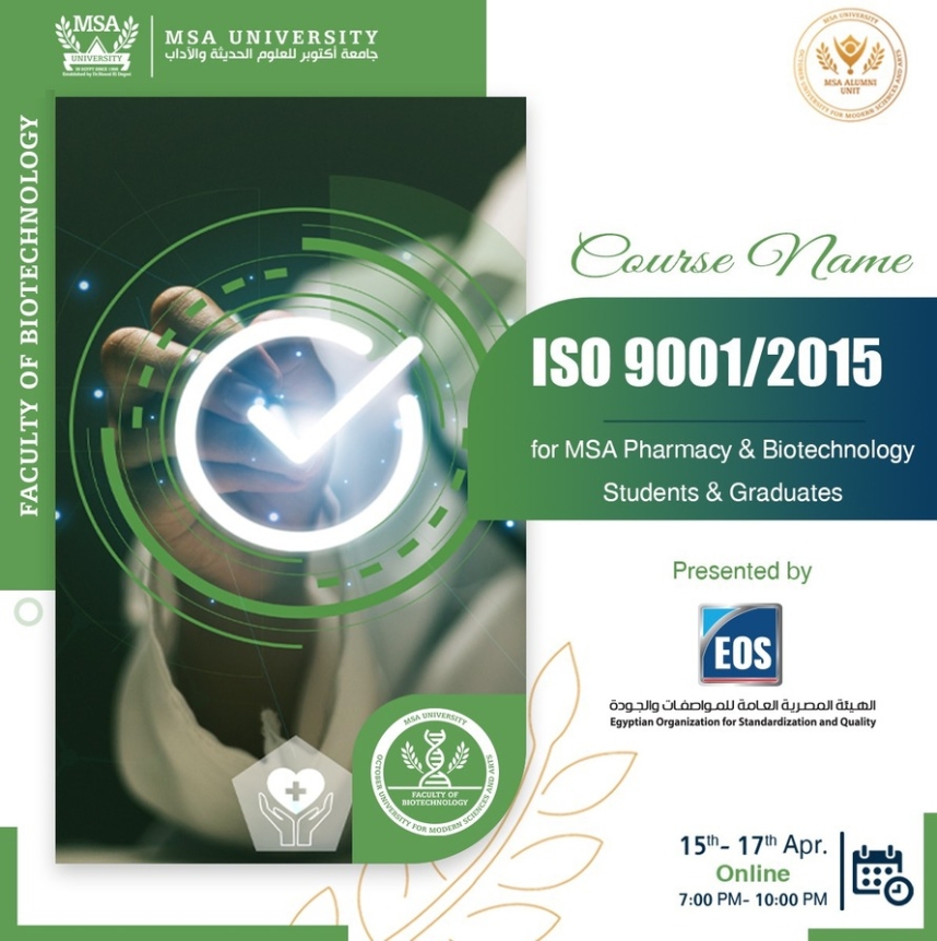October University for Modern Sciences and Arts (MSA University) is delighted to extend an invitation to students and graduates of the Faculties of Pharmacy and Biotechnology to participate in our esteemed ISO 9001/2015 course, a cornerstone in healthcare quality assurance. …