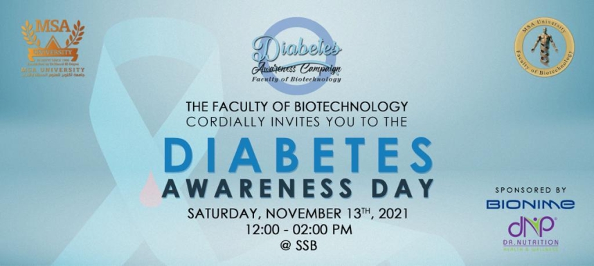 The faculty of Biotechnology at MSA University would like to cordially invite all the students and staff members to the attend “Diabetes Awareness Day” event that will take place next Saturday, November 13th, 2021 from 12:00 PM to 2:00 PM …
