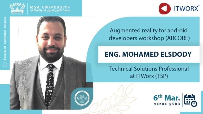 The Faculty of Computer Science cordially invites MSA Students to attend a session titled “Augmented reality for android developers workshop (ARCORE)” given by the expert Eng. Mohamed Elsdody, Technical Solutions Professional from ITWorx. Eng. Mohamed Elsdody is a Lead …