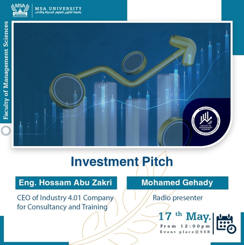 The Faculty of Management Sciences at October University for Modern Sciences and Arts (MSA University) is excited to invite you to attend an upcoming entrepreneur competition titled “Investment Pitch” The competition is organized by Industry 4.01 Company for Consultancy and …