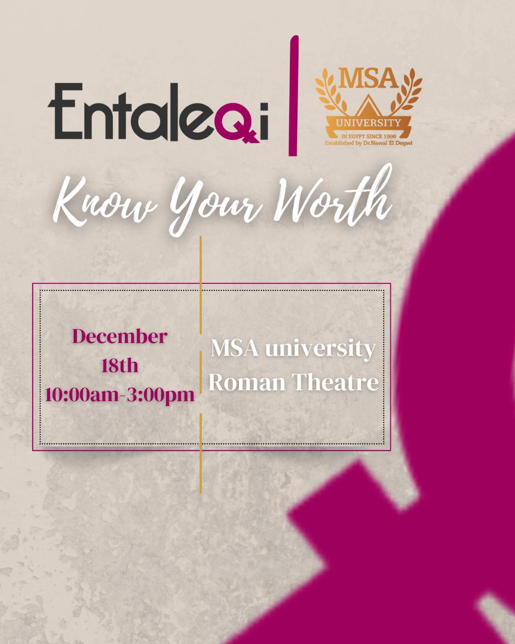 Your voice matters. Your safety matters. You matter The Faculty of Mass Communication at October University for Modern Sciences and Arts (MSA), in collaboration with the Entaleqi Platform, invites you to attend an event entitled “Know Your Worth”, which will …