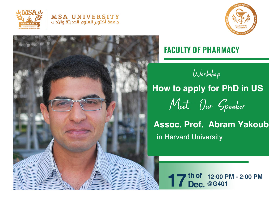 The Faculty of Pharmacy at October University for Modern Sciences and Arts (MSA) is pleased to announce a distinguished academic session titled “How to Apply for a PhD in the US,” delivered by Assoc. Prof. Abram Yakoub, Associate professor and …