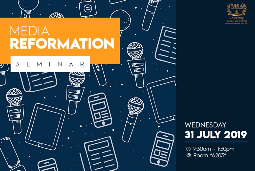On 31th July 2019 in room A203 {9:30pm to 02:00pm} The Faculty of Mass Communications at MSA University is pleased to invite all students and graduates of the Faculty to attend the seminar “Media Reformation” and participate in laying the foundation …