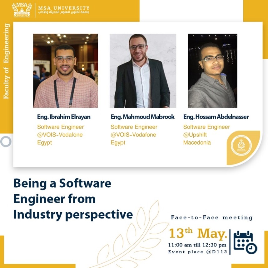 The Computer System Engineering Department (CSE) at the Faculty of Engineering is inviting the students & academic Staff to attend a technical TechTalk seminar entitled ‘Being a Software Engineer from Industry perspective’ which will be given by three experts: Ibrahim …