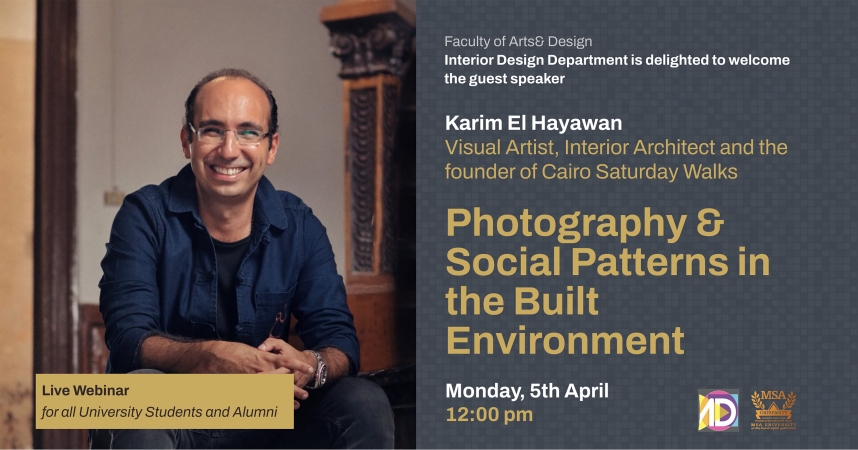 The Faculty of Arts & Design – Interior Design department is pleased to be hosting an incredible LIVE WEBINAR talk entitled “ Photography & Social Patterns in the Building Environment “ by Karim El Hayawan , a Cairo-based visual artist and interior architect and the founder …