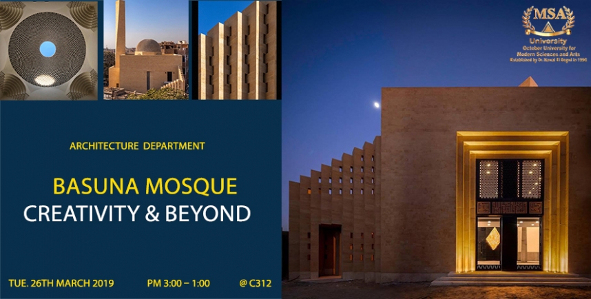 On 26th March 2019 {01:00 pm – 03:00 pm} in C312 The Department of Architecture at MSA is delighted to host the lecture entitled: Basuna Mosque- Creativity & Beyond. On Tuesday 26th March 2019, by Arch. Waleed Arafa, in C312. …
