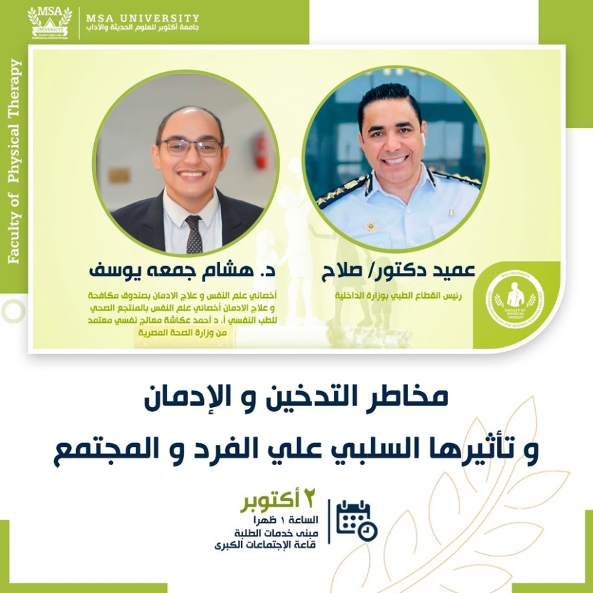 The Faculty of Physical Therapy invites you to attend an awareness session titled “The Dangers of Smoking and Addiction and Their Negative Impact on the Individual and Society.” We will discuss efforts to implement the national strategy for drug prevention, …