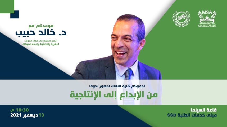 The Faculty of Languages at MSA University would like to invite all students to join the youth symposium “From Creativity to Productivity” by Dr. Khaled Habib within the framework of the faculty’s interest in providing distinguished and inspiring models for …